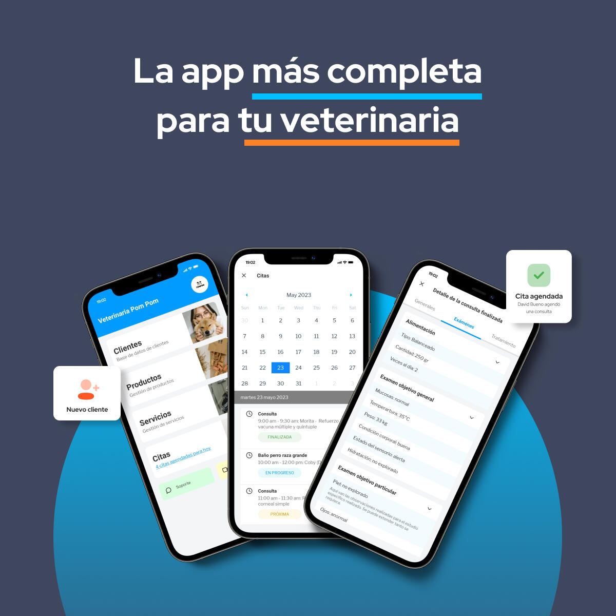 La herramienta completa para veterinarias. Gestionar negocio, agendar citas y aplicación para clientes.